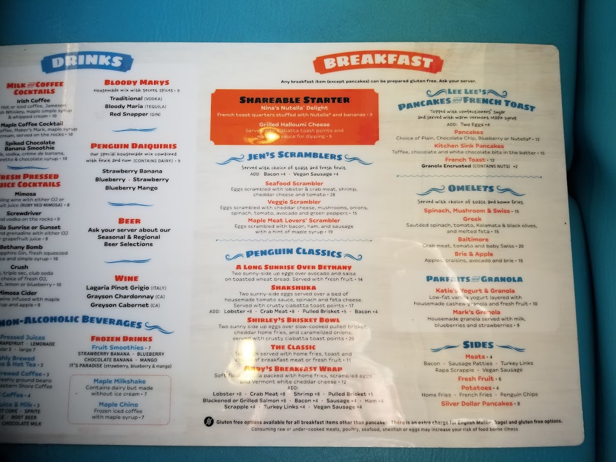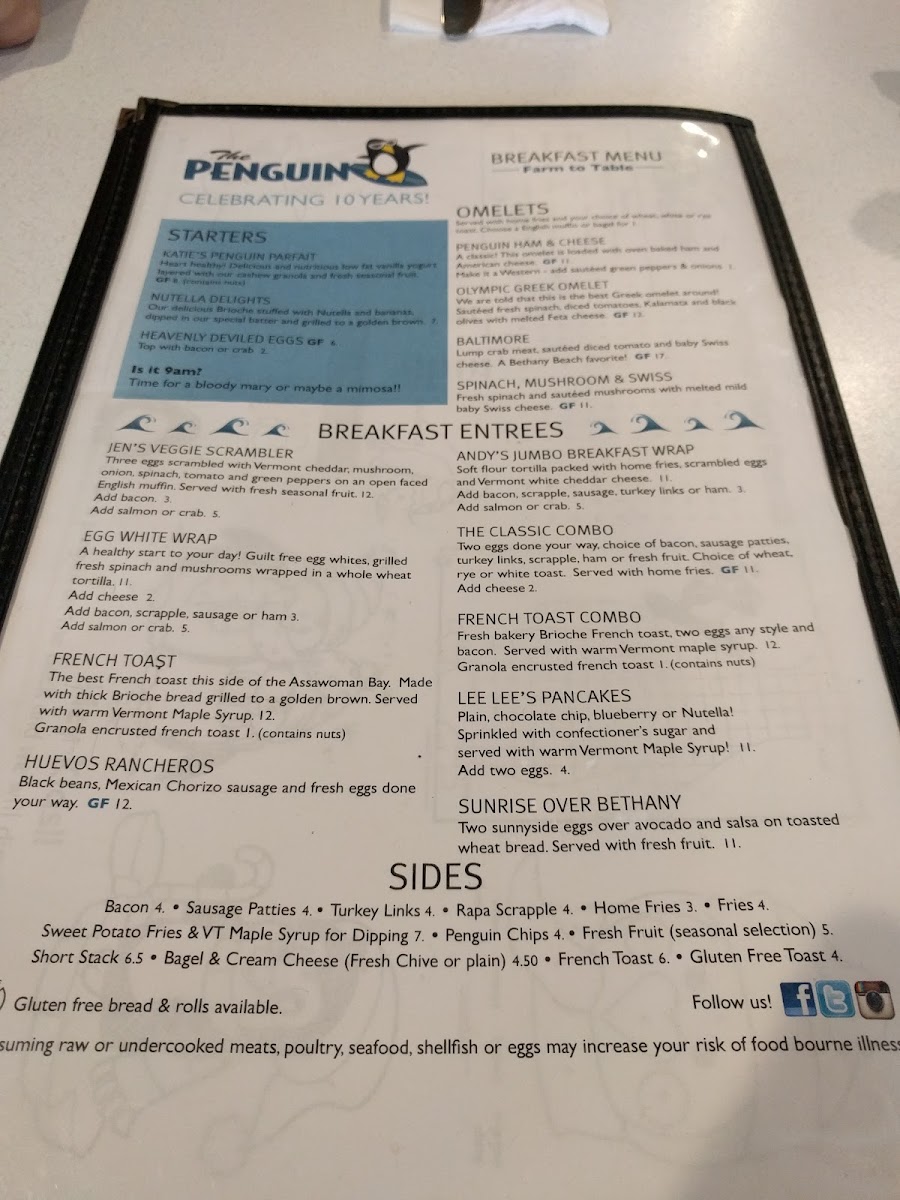 Welcome to The Penguin, a delightful breakfast and brunch spot nestled in the heart of Bethany Beach, just steps from the boardwalk. The menu is a vibrant mix that caters to a diverse palate, featuring scrumptious French toast, fluffy blueberry pancakes, and hearty wraps like Andy’s Breakfast wrap that highlight locally inspired flavors.